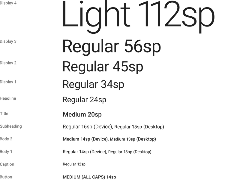 Al no ser un experto en tipografía trato de apegarme al máximo a este tipo de reglas. El truco consistente en tener una guía de estilos tipográficos basados en los que da Material Design y modificarlos con la tipografía del producto. Una vez definida te darás cuenta lo fácil que es aplicarla en un producto.