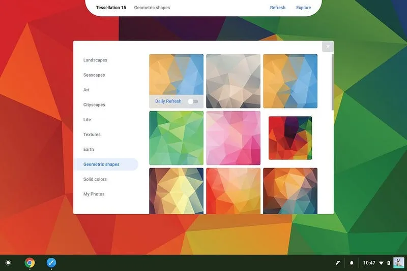 First spotted on Chrome OS, then on some Android apps. On menus, the selected element was previously just highlighted with a plain rectangle. Now, they also have a rounded side. It works pretty well on a aesthetic perspective. The rhythm of the list now merge better with the section itself without being drastically cut.